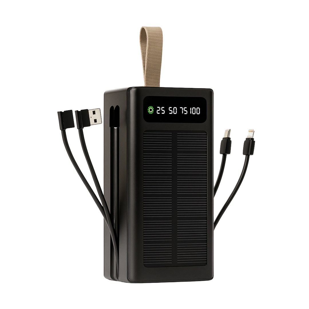 The Solivox NanoGrip 200 Solar Power Bank is an ultra-compact solution designed for quick top-ups and solar dependability. With integrated cables, a solar panel front face, and a clear LED battery indicator, it's ideal for everyday carry and light outdoor use. Plug, charge, and go — power that fits in your pocket.