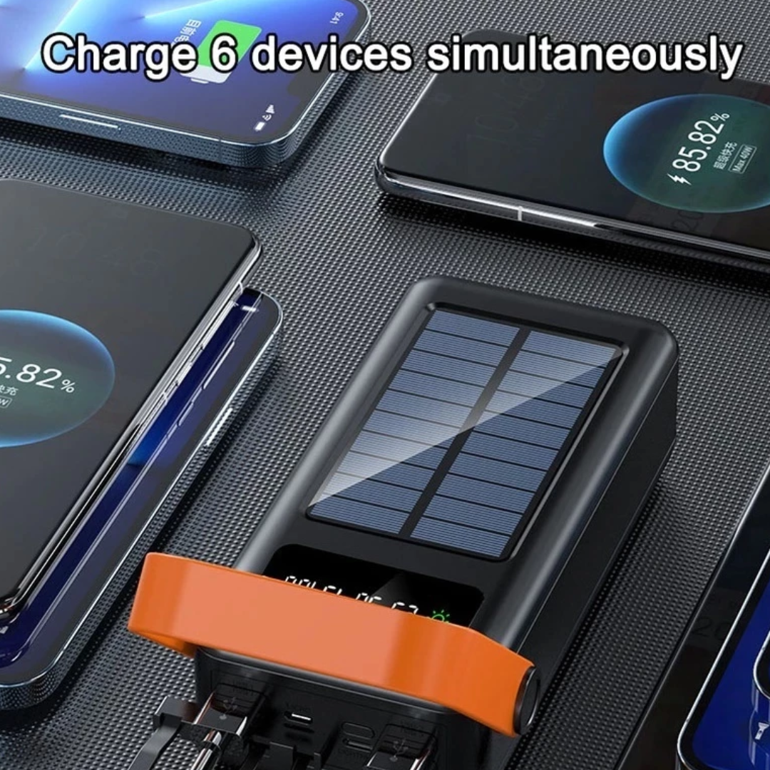 The VoltMate UltraCharge 300 Solar Power Bank is the most versatile and compact solution for staying powered on the move. Featuring four integrated charging cables, a built-in flashlight, and multi-USB outputs, this all-in-one powerhouse is designed for extreme convenience. Its upright body and rugged carrying handle make it a travel essential.